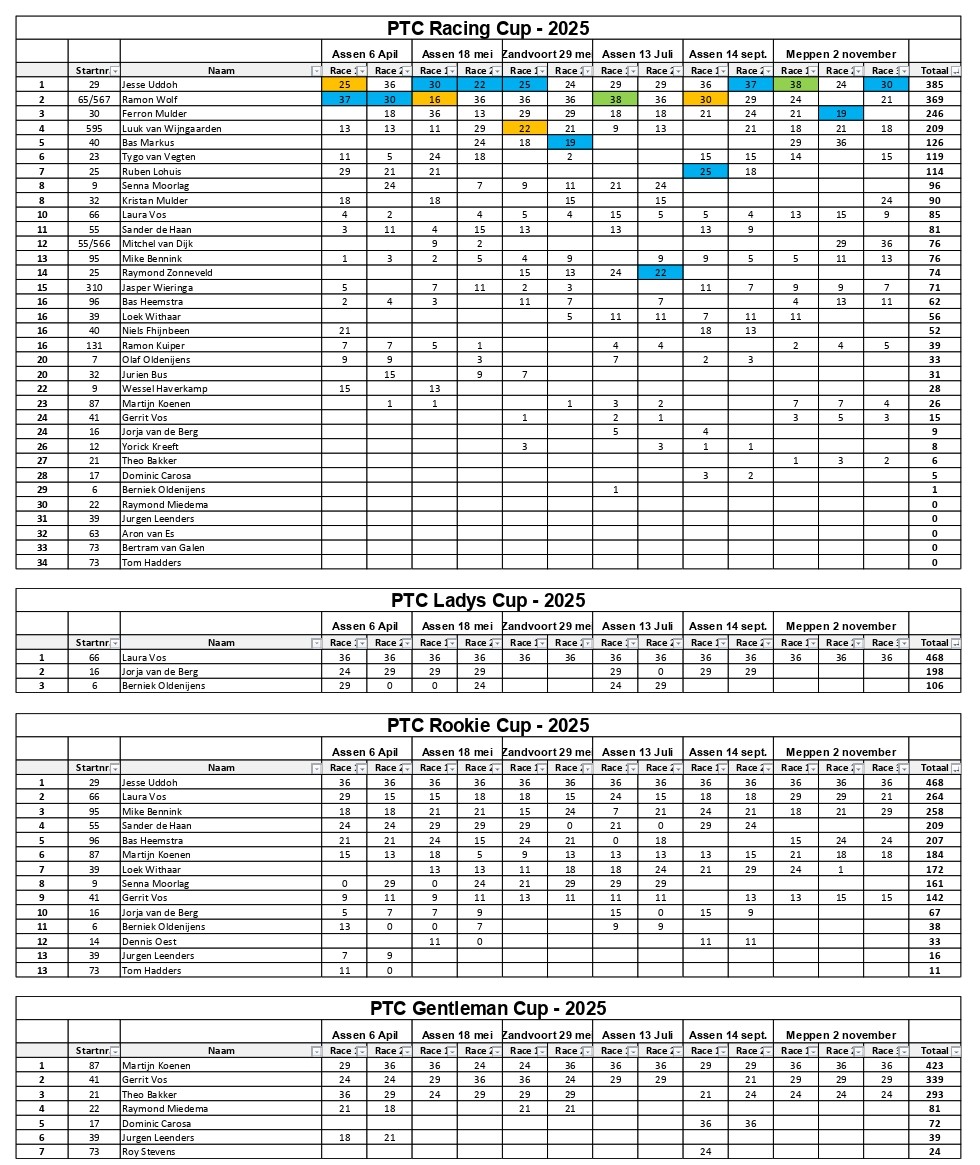 Eindstand PTC RACING CUP 2024